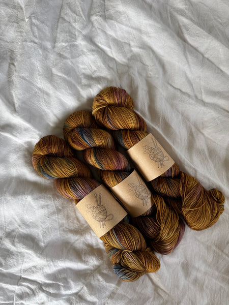 This is the main base I stock for socks but it is also my bestselling fingering weight yarn. It can of course be used for any other 4 ply projects as well! Perfect for shawls and other garments too. This yarn has such an incredible gleam that it practically glows, and it is incredibly soft too and wears very well with no pilling.