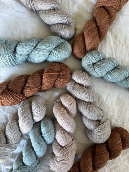 I have dyed up some non-superwash 4ply merino in Istredd, Fringilla, Kaer Morhen, and Roach with this particular pattern in mind. My natural base is super soft but also is a little grippy which will be perfect for the spur hat.
